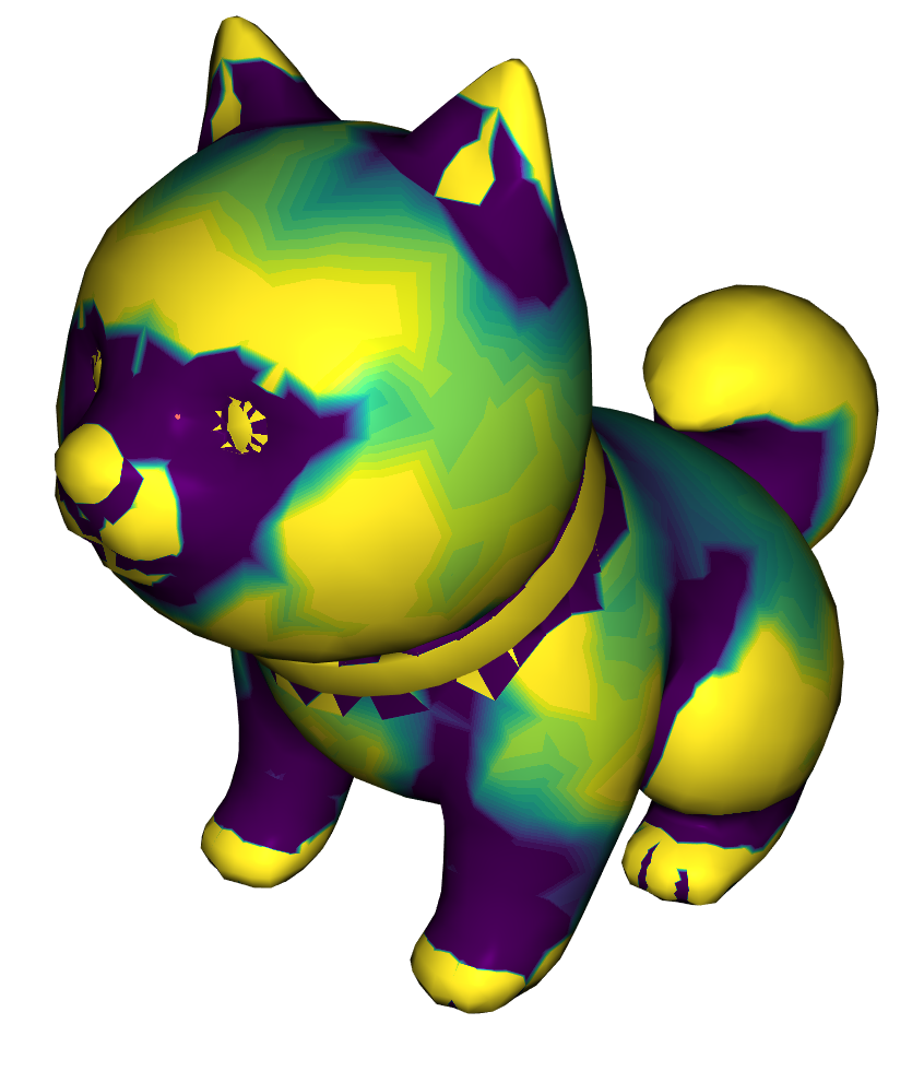 | \(\sigma\) | The width of the Gaussians used for the preference function. Higher values of \(\sigma\) allows more deviation from the normal preferences. This can sometimes result in clearer patches. By default we set this value to \(10\). For meshes with less faces we recommend decreasing this, to have less deformations. |